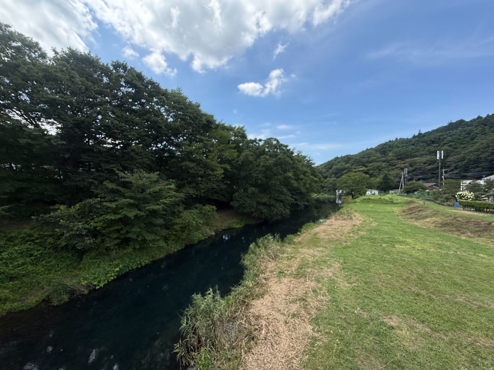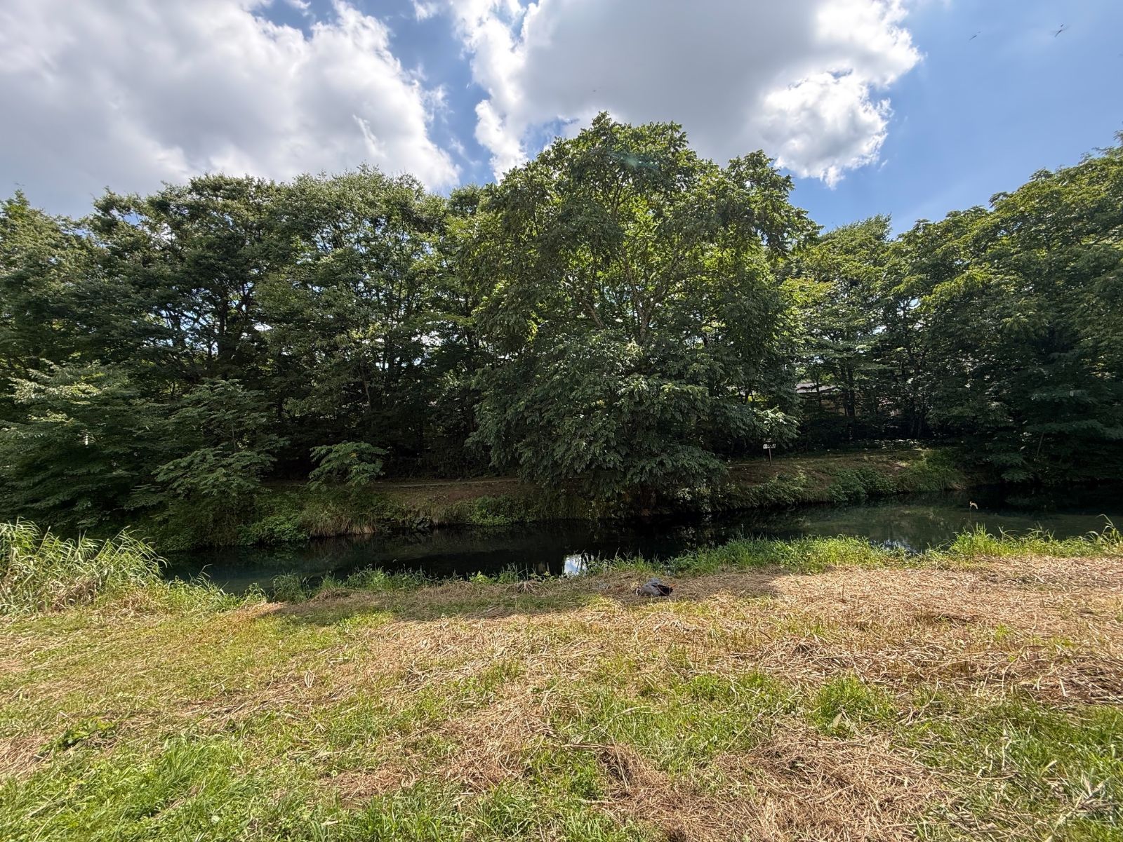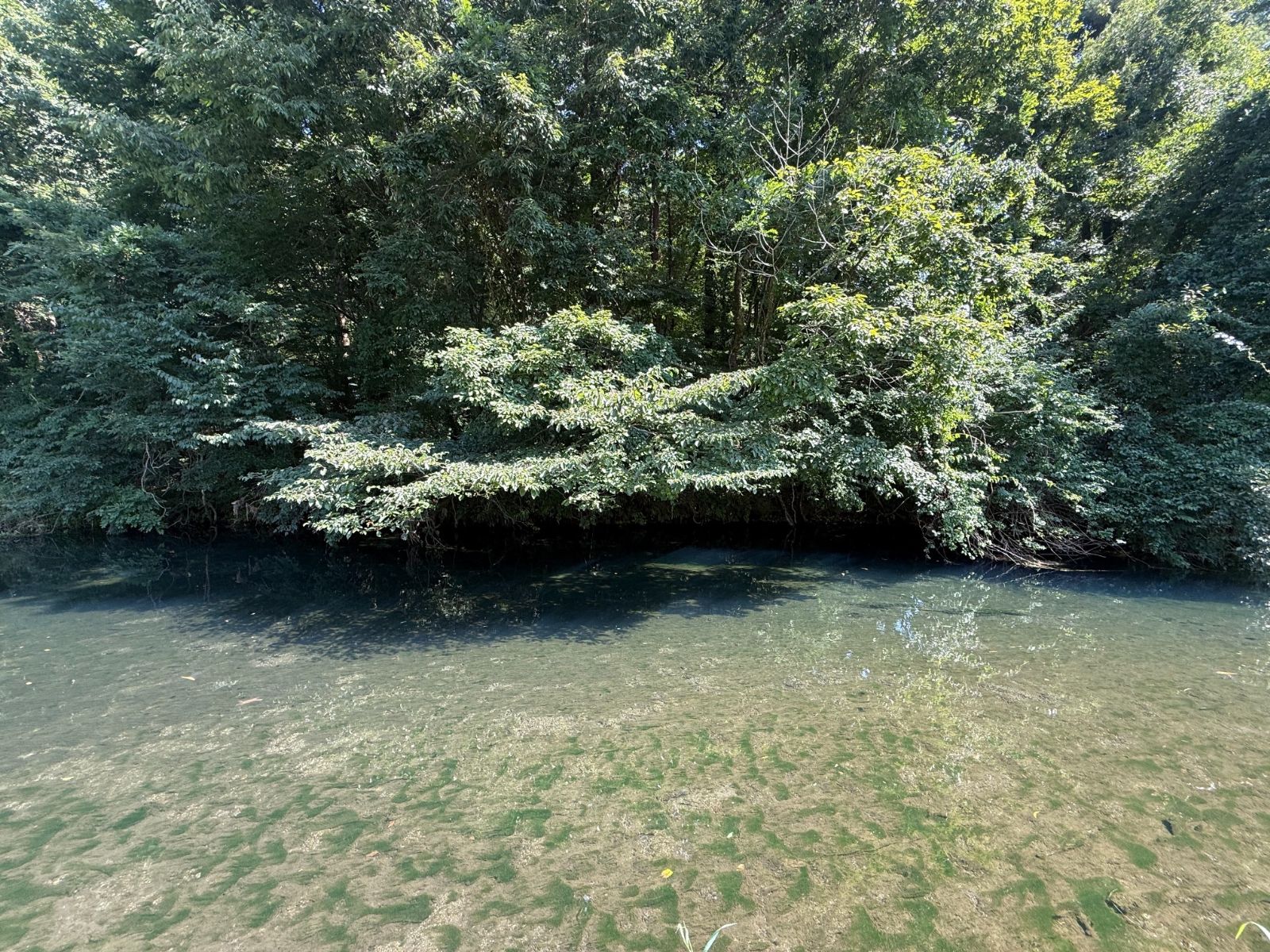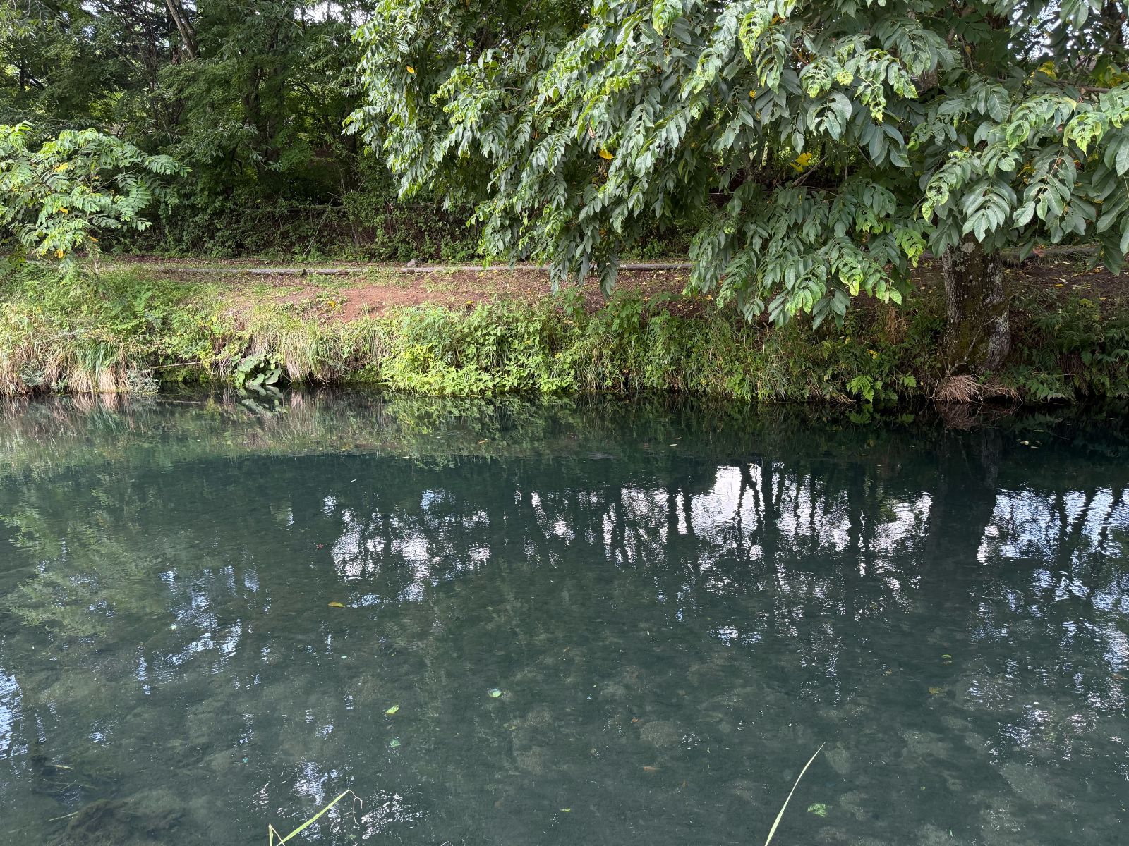 対岸の樹木によって、わずかながら存在している日影