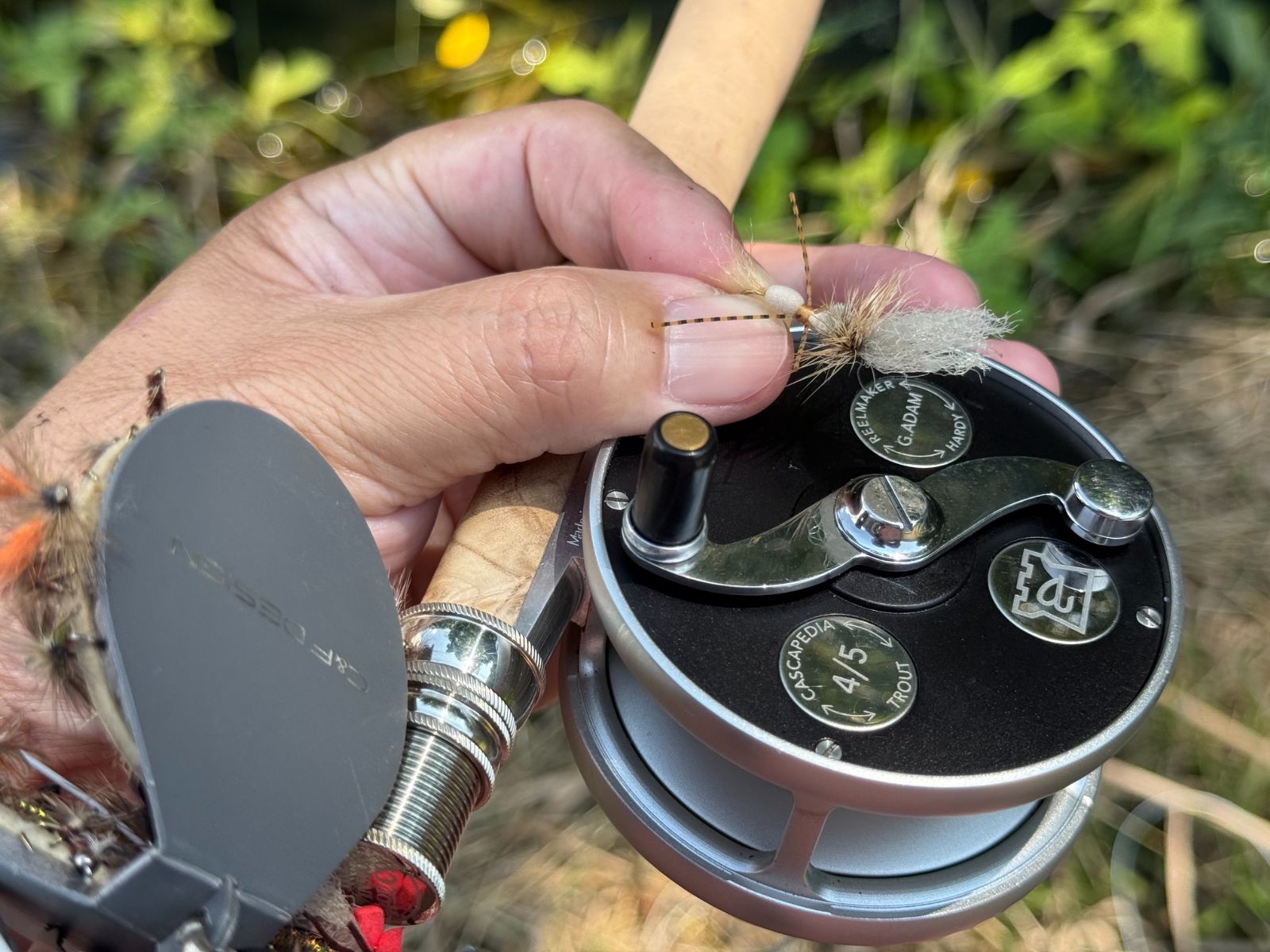 様々なサイズ・カラーバリエーションのあるパターンだが、私が使用するのはフタスジモンカゲロウを意識した色調のもの。サイズはロングシャンクで8番から10番を多用する。化繊のウイングは派手なカラーを避けるが、ボリューミーな仕上げが使いやすいと感じている。本当は捕食されていたシャックを意識し、軽く薄い印象のツーフェザーフライという選択肢も頭をよぎったのだが、下流へのロングドリフトを考えるとポッカリと浮くフランピー・グランピーに軍配があがった。