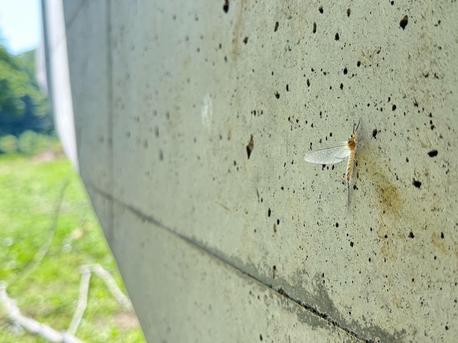 自衛隊橋の橋脚で羽を休めるフタスジモンカゲロウのダン