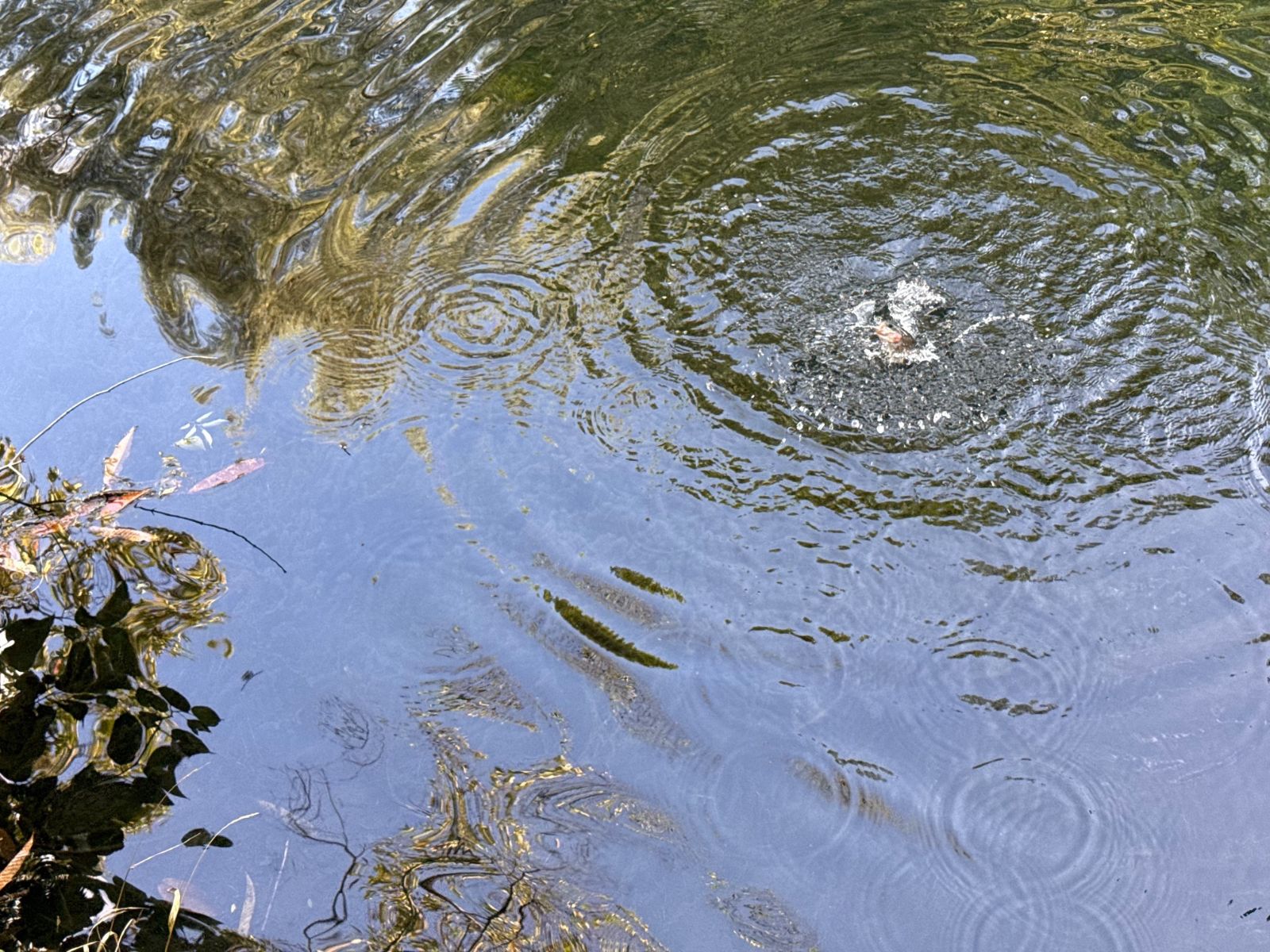 静かな水面をかき乱すように暴れる魚の正体はニジマス