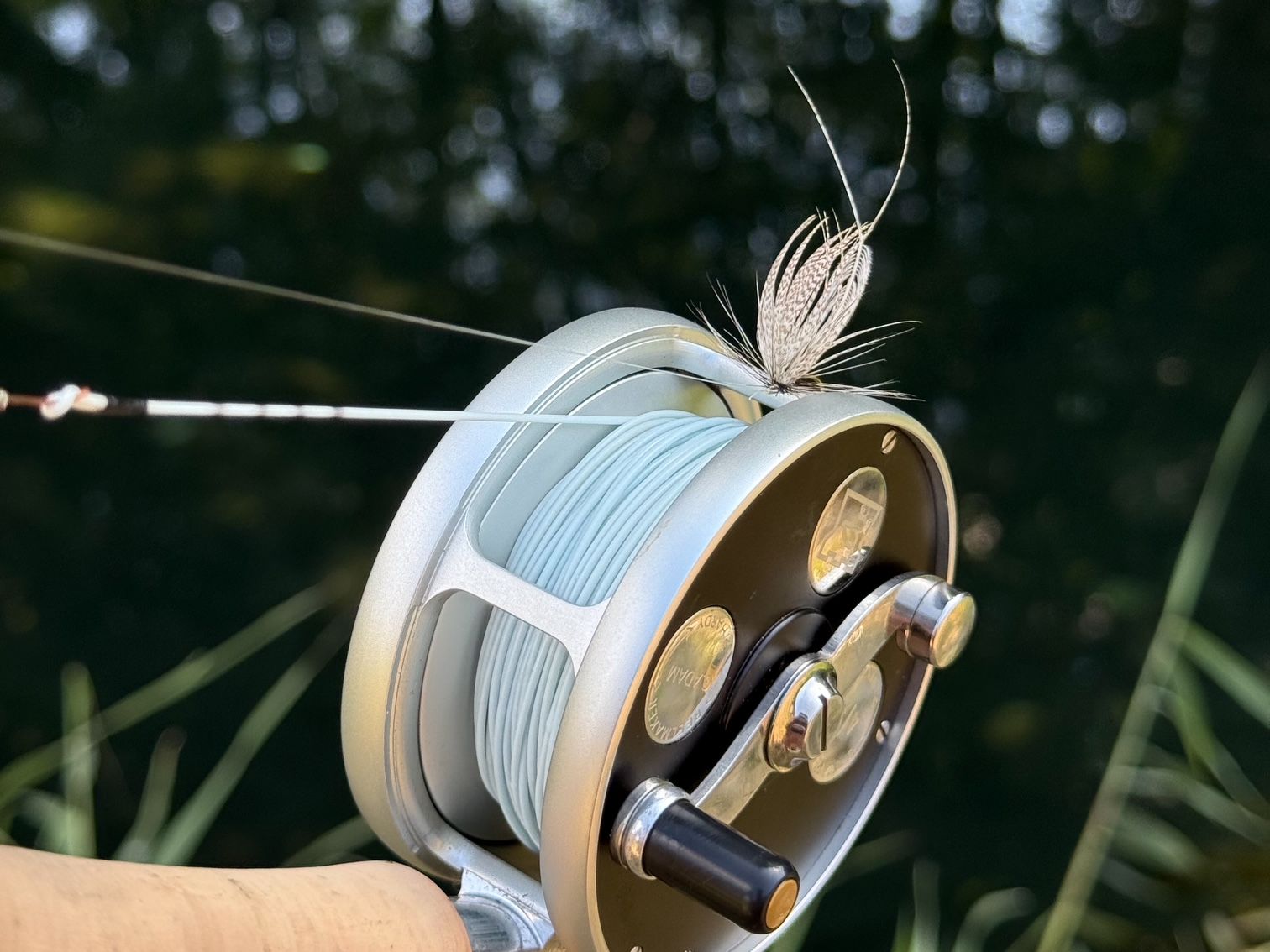 何度目かのドリフトで完璧なフライ先行のドリフトになっている手応えを感じていると、低く浮いて流れていたフォームビートルが音もなく消えた。あまりにも静かな捕食行動に一呼吸遅れた反応になってしまったが、なんとかハリ掛かりさせることができた。ラインテンションを保つために全力でラインをたぐり、軽い追い合わせを2回ほどくれて、ようやく落ち着いてファイトできる状態になった。